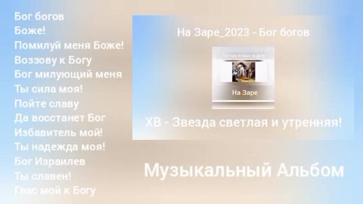 Далее: Муз Альбом ХВ Звезда светлая и утренняя!