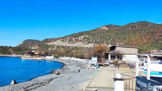 Пляжи Анапы. Большой Утриш, очень красивое место, потрясающий морской воздух. Люди загорают и купаются 30 октября 2023 года.