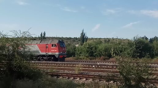 2ТЭ25Км - 0261 с грузовым поездом.