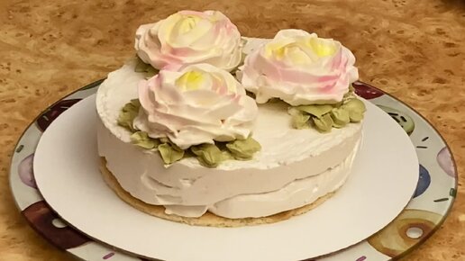Зефирный торт с розами из белково-заварного крема (БЗК). На День Рождения моего сына!