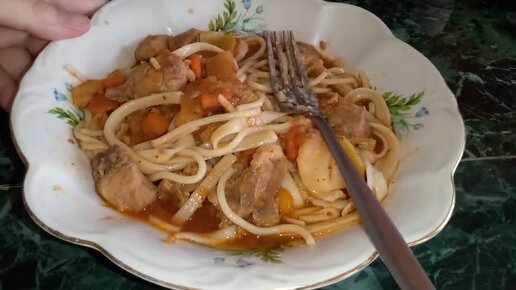 Лагман. Как приготовить. С лапшой. С мясом. Бульон. На лагман. Рецепт. Приготовления. Дома. Овощи. Спагетти. Лапша. Картофель. Рецепт лагман