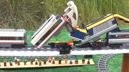 Поезда Лего Прыгают с трамплина и падают в воду - Замедленная Съемка.