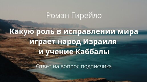 Ответ на вопрос: Какую роль в исправлении мира играет народ Израиля и учение Каббалы