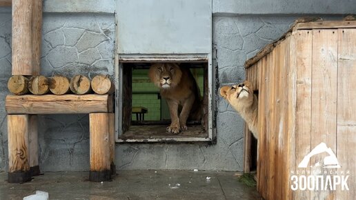Тёплым ноябрьским днём предложили мы львиной парочке прогуляться в уличном вольере.