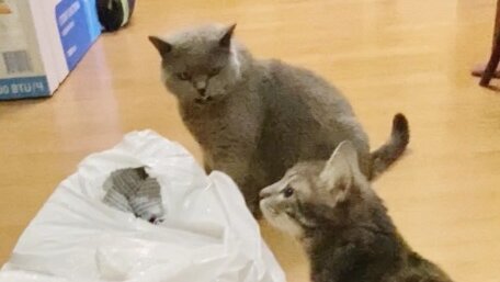 Кто прогрыз мешок с кормом 🤨 Точно курьер 😼 жалобу писать надобно 😼