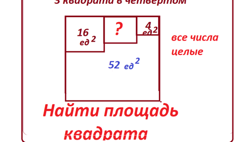 Три квадрата в четвёртом. Найти площадь одного из квадратов