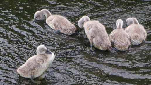 Лебедь Зигфрид. Пять малышей. Пруд в Гурьевске 07.06.2017 г.
