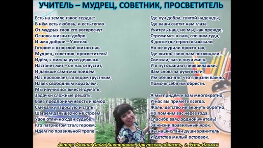 Ольга Фокина (Усть-Илимск) - учитель мудрец, советник, просветитель (читает автор)