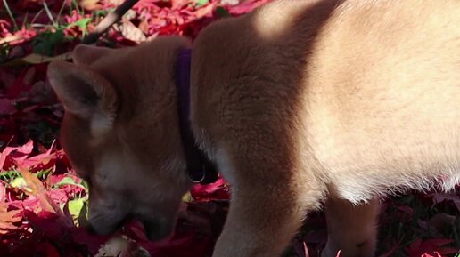 Щенки Сиба-Ину весело играют вместе в осеннем саду.