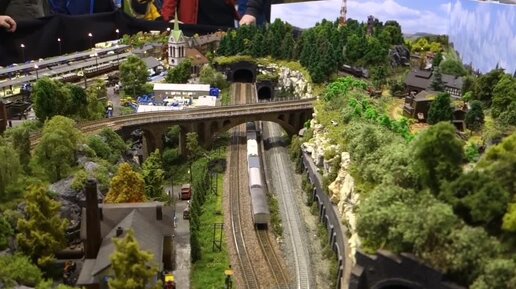 Макет в ТТ масштабе. Модели поездов движутся по макету. (1:120)