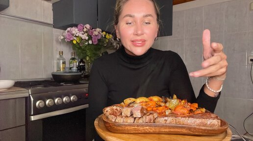 МУКБАНГ/СТЕЙК С ЗАПЕЧЕННЫМИ ОВОЩАМИ