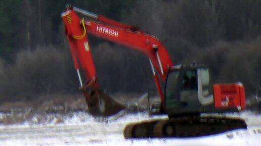 Экскаватор Hitachi 180 на реке.