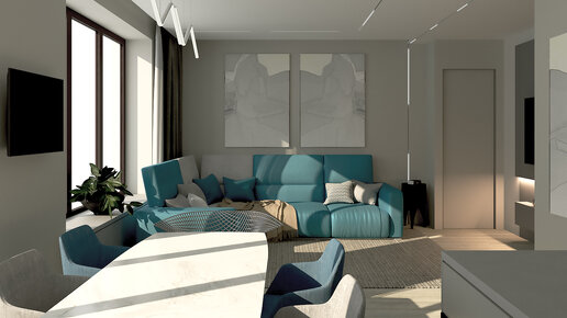 Индивидуальный проект. Гостиная-кухня плюс столовая зона. Используем несколько идей, смешиваем