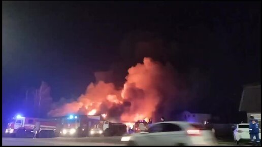 В Дрожжановском районе РТ тушат крупный пожар. Загорелся склад на против магазина «Находка».