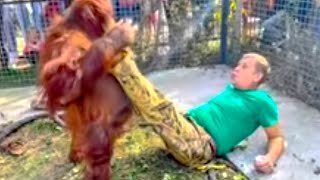 Посмотрите КАКОЙ ОГРОМНОЙ стала орангутан Дана, она даже поднимает Олега Зубкова!