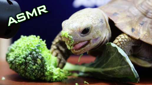 Черепаха неторопливо ест брокколи, очень неторопливо) ASMR видео