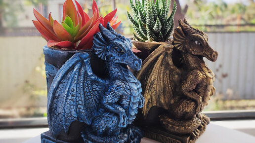 Кашпо для суккулентов в виде дракона - символа 2024 года своими руками.