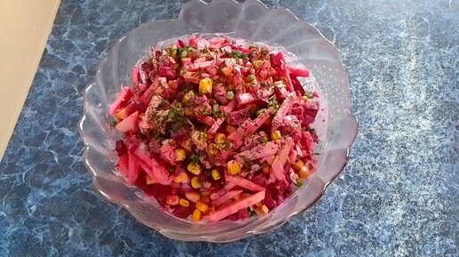 Салат со свеклой, солёным огурцом, яблоко и кукуруза