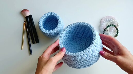 Набор вязаных корзин ручной работы.