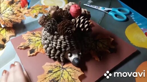 Школьная поделка из шишек ёжик.