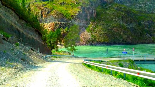 Горный Алтай Слияние Чуи и Катуни. Новый мост на Инегень через Катунь.