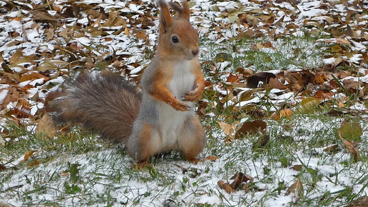 Два веселых и забавных бельчонка с удовольствием грызут орешки! Гатчинский парк.