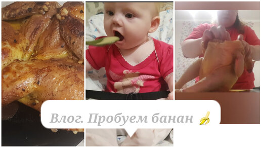 Влог. Продолжаем прикорм. София пробует банан 🍌 Готовлю домашнюю курицу - гриль в духовке 🍗🍗🍗