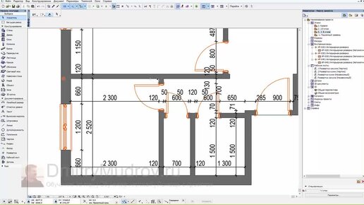 Дизайн-проект квартиры в Архикаде - 02 Чертим внутренние перегородки квартиры в Archicad