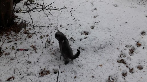 Гулям с котиком по снегу.