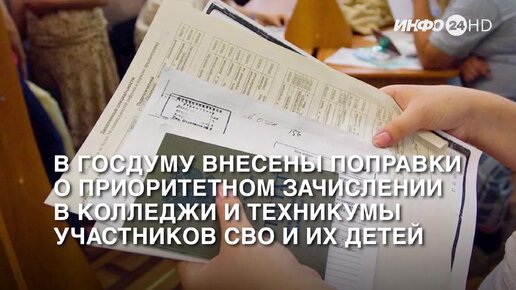 В Госдуму внесены поправки о приоритетном зачислении в колледжи и техникумы участников спецоперации и их детей (2023-11-07)