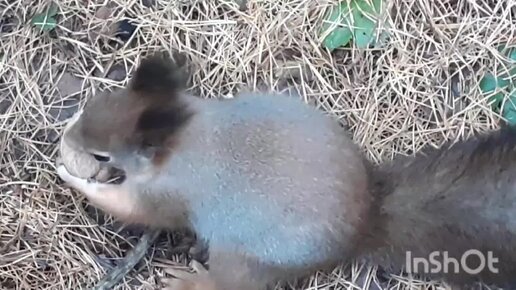 Белочка любит грецкие орехи.
