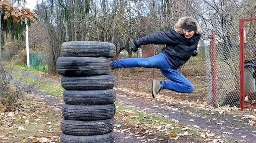 Тоби йоко-гери. Различные варианты удара ногой в прыжке в сторону.