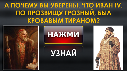А почему Вы уверены, что Иван IV, по прозвищу Грозный, был кровавым тираном? Это, навязанное нам, историческое заблуждение.