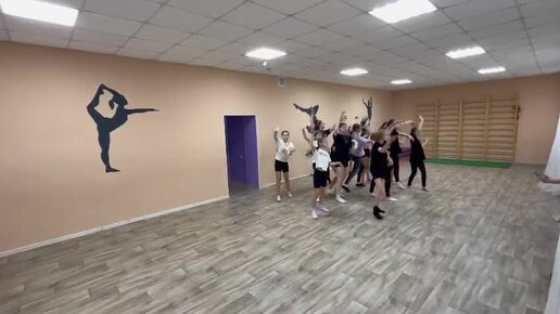 Занятия с хореографом. Две мои внучки среди девочек помладше в чёрных футболках.