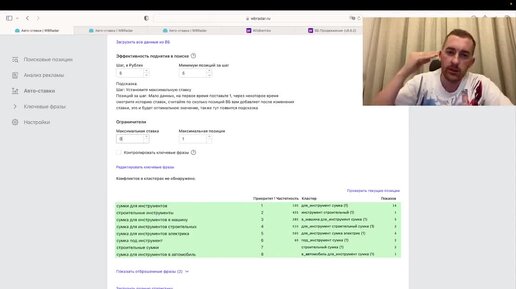 Настройка автоматической кампании в WBRadar. Плюс и минус фразы. Кластеры и доп кластеры