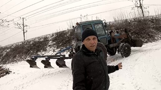 Пашем трактором по первому снегу. #вспашка