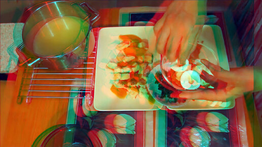 3D stereo red-cyan Заливное из лосося с красной икрой