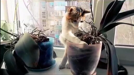 Понаставили тут горшков, даже прогуляться нам, кошкам, негде...