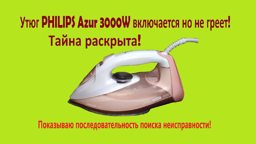 Утюг Philips Azur 3000W включается но не греет! Детальный разбор работы всех узлов.