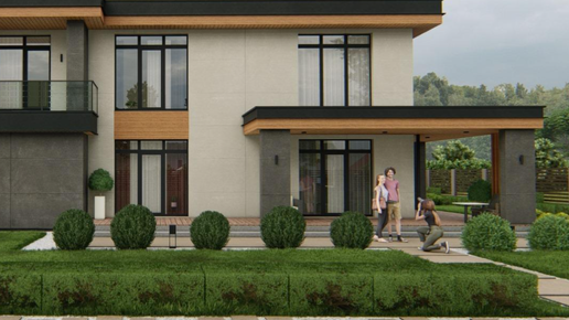 Дом с гаражом на 2 авто, двумя террасами, 3 спальнями и кухней-гостиной.