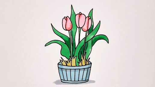 Видеоурок как нарисовать цветы тюльпаны в горшке