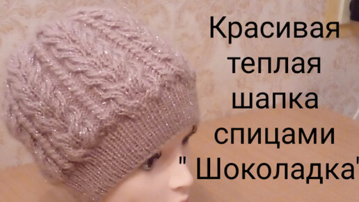 Красивая теплая шапка спицами "Шоколадка".