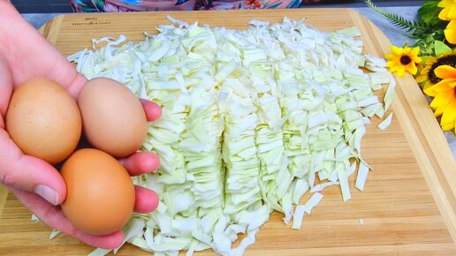 Беру 3 яйца, нарезаю капусту и готовлю "вкуснятину" по домашнему рецепту бабушки из Минска. Он стал одним из любимых блюд в нашей семье.