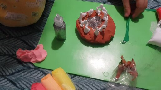 Лиза делает торт из воздушного пластилина
