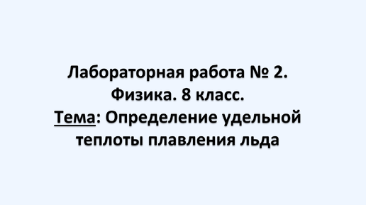 Лабораторная работа № 2. Физика 8 класс. Тема: Определение удельной теплоты плавления льда