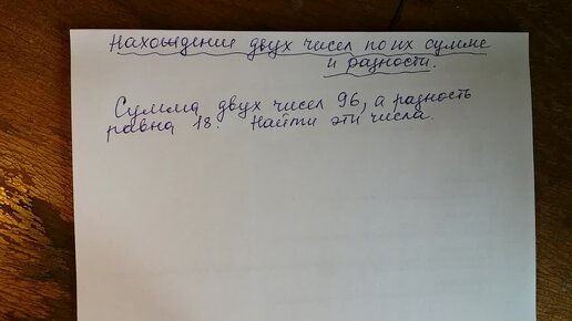 Математика 5 класс. Нахождение двух чисел по их сумме и разности.