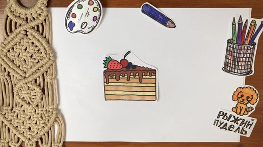 Как нарисовать кусочек торта 🍰 / простой урок рисования для детей 5-8 лет