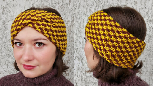 Повязка с перехлестом "Звездочки" на ручной вязальной машине Ивушка