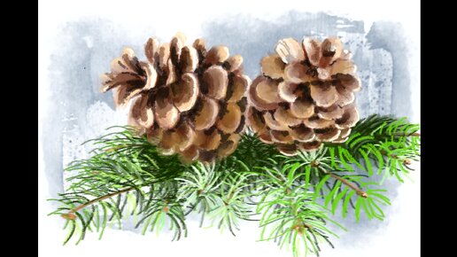 Рисуем Новогоднюю открытку. Часть 2 Еловые веточки