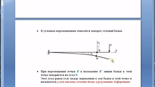 Линейные и угловые перемещения при изгибе